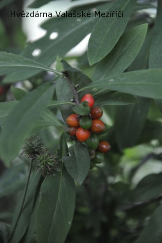 | Lýkovec jedovatý - plod (14. června 2011) Červené plody - peckovice - lýkovce jedovatého (Daphne mezereum) obsahují společně s kůrou tohoto keře nejvíce látky zvané mezerein, která je prudce jedovatá. |