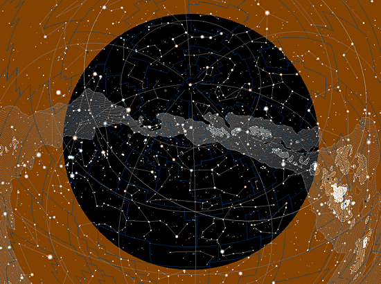 Mléčná dráha se sice táhle přes celou oblohu vysoko nad obzorem stočená oproti létu o 90°, díváme se však na její nejřidší části, ty zajímavější zapadají spolu s dominantami léta.