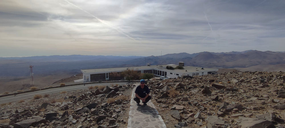 Obr. 15: Jakub Koukal před budovou La Silla na cestě k dalekohledu E152. V pozadí budova s ubytováním.