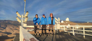 Na cestu do dalekého Chile se vydal čtyřčlenný výsadek ve složení Libor Lenža, ředitel Hvězdárny Valašské Meziříčí, Jakub Koukal, autor návrhu technického řešení observačního systému a odborný pracovník Hvězdárny Valašské Meziříčí, Jan Zítka, hvězdárenský elektrotechnik a specialista Jiří Srba, externí spolupracovník naší hvězdárny, pracovník AsÚ AV ČR. Tito čtyři muži vyrazili 29. května 2025 v 6 hodin ráno na letiště do Prahy, odkud letěli do Paříže, z Paříže do Santiaga de Chile a dále do La Serena. Následovala celkem tříhodinová cesta do konečné stanice, hnízda světové astronomie, observatoře La Silla. Celkem celá cesta zabrala hrůzostrašných 36 hodin, a potkali se na ní jak s dobrými věcmi – profesionálním přístupem zaměstnanců chilských letišť, tak s horšími – prostor mezi sedačkami, který opravdu nebyl uzpůsoben pro komfortní 14hodinový let absolvovaný průměrným Středoevropanem.