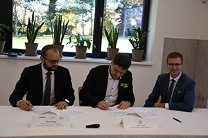 | Obr. 5: Proslov pana Martina Feruse. Autor: Hvězdárna Valašské Meziříčí, p.o. | Obr. 6: Podepisování smlouvy o spolupráci. Autor: Hvězdárna Valašské Meziříčí, p.o. |