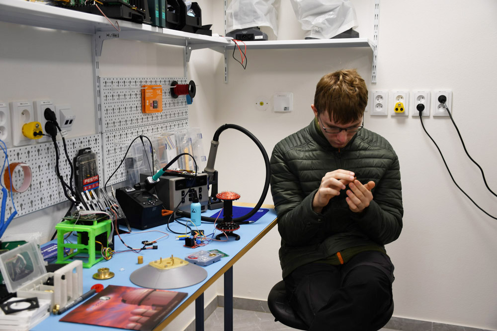 O dva dny později, v sobotu 8. 11. se dveře KKC otevřely všem – návštěvníkům, některým stabilním, ale i takovým, kteří se k nám ještě nikdy nepodívali. Hlavní součástí programu byla i tentokrát prohlídka všech prostor nové budovy: návštěvníci se dostali do všech pokojů, laboratoří, k CNC strojům, 3D tiskárnám a dokonce i do strojovny. Vyzkoušet si mohli mikroskopy a virtuální realitu, která se těšila veliké oblibě jak nejmladších, tak i nejstarších návštěvníků.