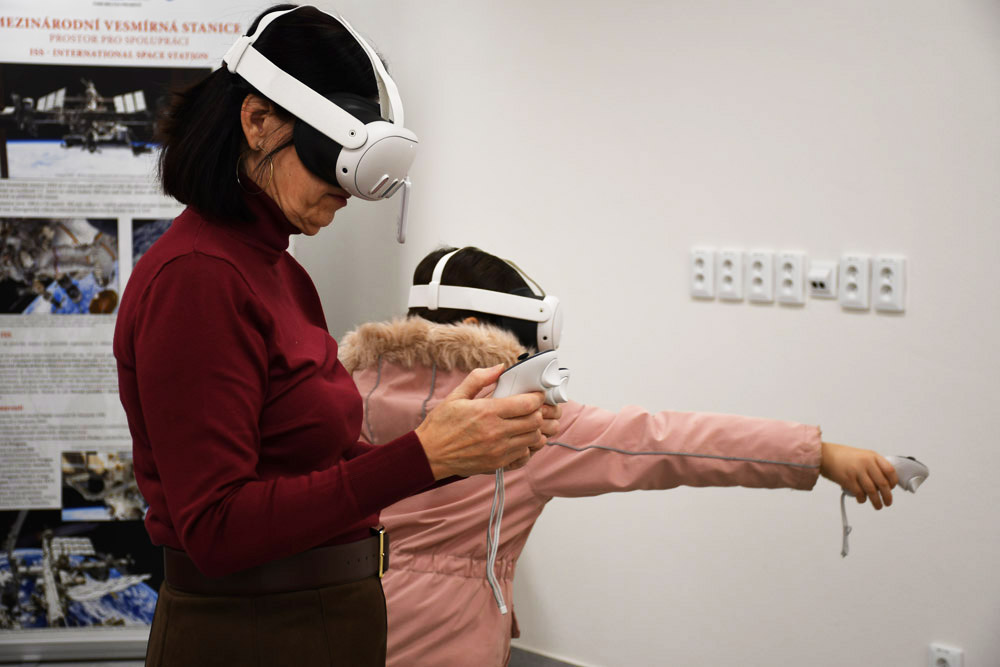 | Obr. 9: Nadšení objevitelé virtuální reality. Autor: Hvězdárna Valašské Meziříčí, p.o. | Obr. 10: Technické vybavení. Autor: Hvězdárna Valašské Meziříčí, p.o. |