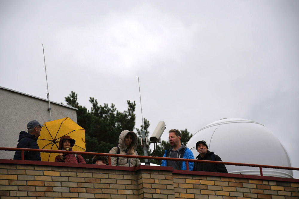 V novém přednáškovém sále měl pan ředitel Libor Lenža pravidelně přednášky o cílech KKC a dalších součástech rozsáhlého projektu, jako je modernizace observačních zařízení a vybudování zcela nové spektroskopické stanice až v dalekém Chile. O posledním zmíněném bylo ke shlédnutí 5 minutové video detailně zachycující zkušenosti a zážitky našeho týmu, které nasbírali při montování kamer a spektroskopů na vrcholcích chilských And, na La Silla. Toto video můžete shlédnout i nyní, a to pod tímto odkazem. Zájem návštěvníků byl po celou dobu zřejmý, padlo spoustu dotazů a doufáme, že i dostatek uspokojivých odpovědí. Dobrá nálada se v celém areálu držela i přes pošmourné počasí, a to za výrazného přispění výborné kávy z trucku meziříčské kavárny Tucan CAFÉ a možnosti zakoupit si za symbolickou cenu ke kávě též frgál. Mimo KKC se mohli návštěvníci podívat také do historické Ballnerovy hvězdárny a běžně nepřístupného odborného pracoviště v jižní budově, kde se dozvěděli, jak a proč na hvězdárně probíhá pozorování Slunce a spektroskopie meteorů. Součástí programu byla také přednáška o historii ke kulatému sedmdesátému výročí hvězdárny.