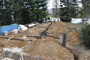 | Obr. 1: Vykopané základy KKC na místě bývalých garáží. Autor: Hvězdárna Valašské Meziříčí, p.o. | Obr. 2: KKC během výstavby. Autor: Hvězdárna Valašské Meziříčí, p.o. |
