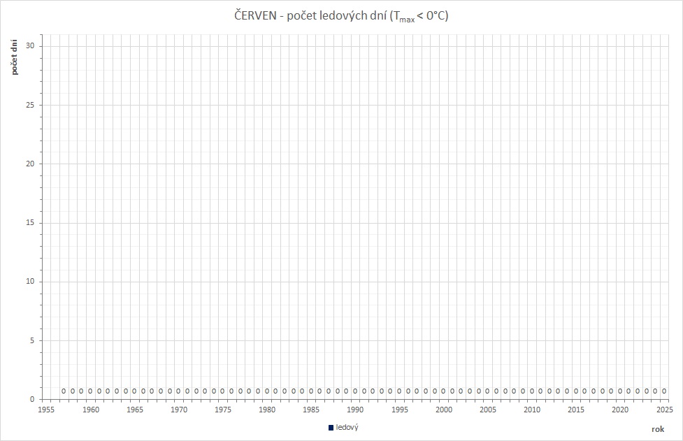 Ledový den (kdy teplota během dne je stále pod 0 °C) se v červnu za celé období měření nevyskytl.