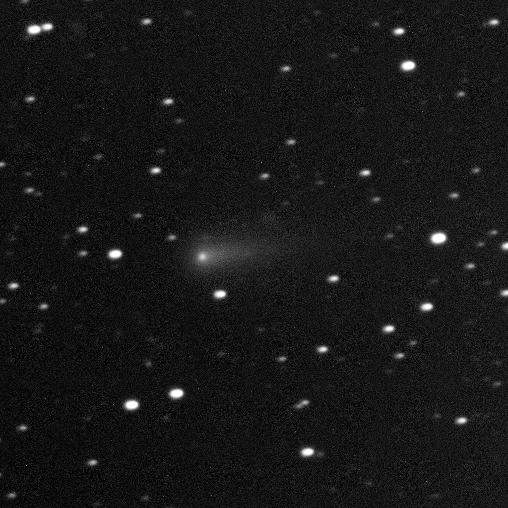 | Obr. 3: Snímek komety 24P/Schaumasse pořízený 25. 2. 2026 s celkovou expoziční dobou 300 s (10×30 s), bez použití fotometrického filtru. Autor: Hvězdárna Valašské Meziříčí, p.o. |