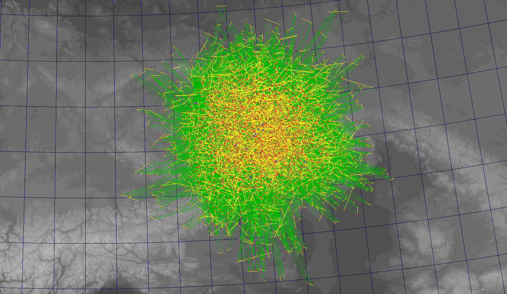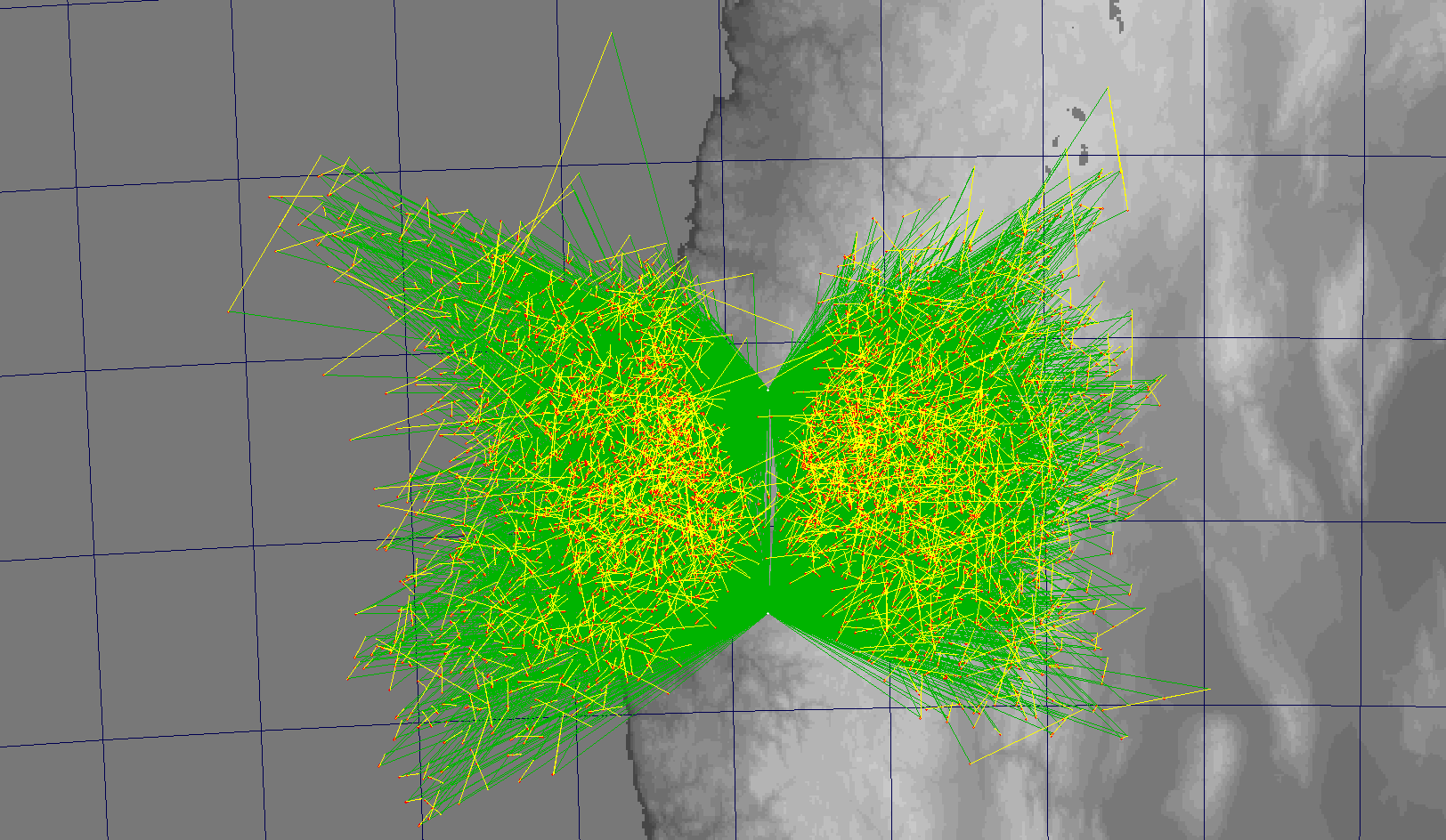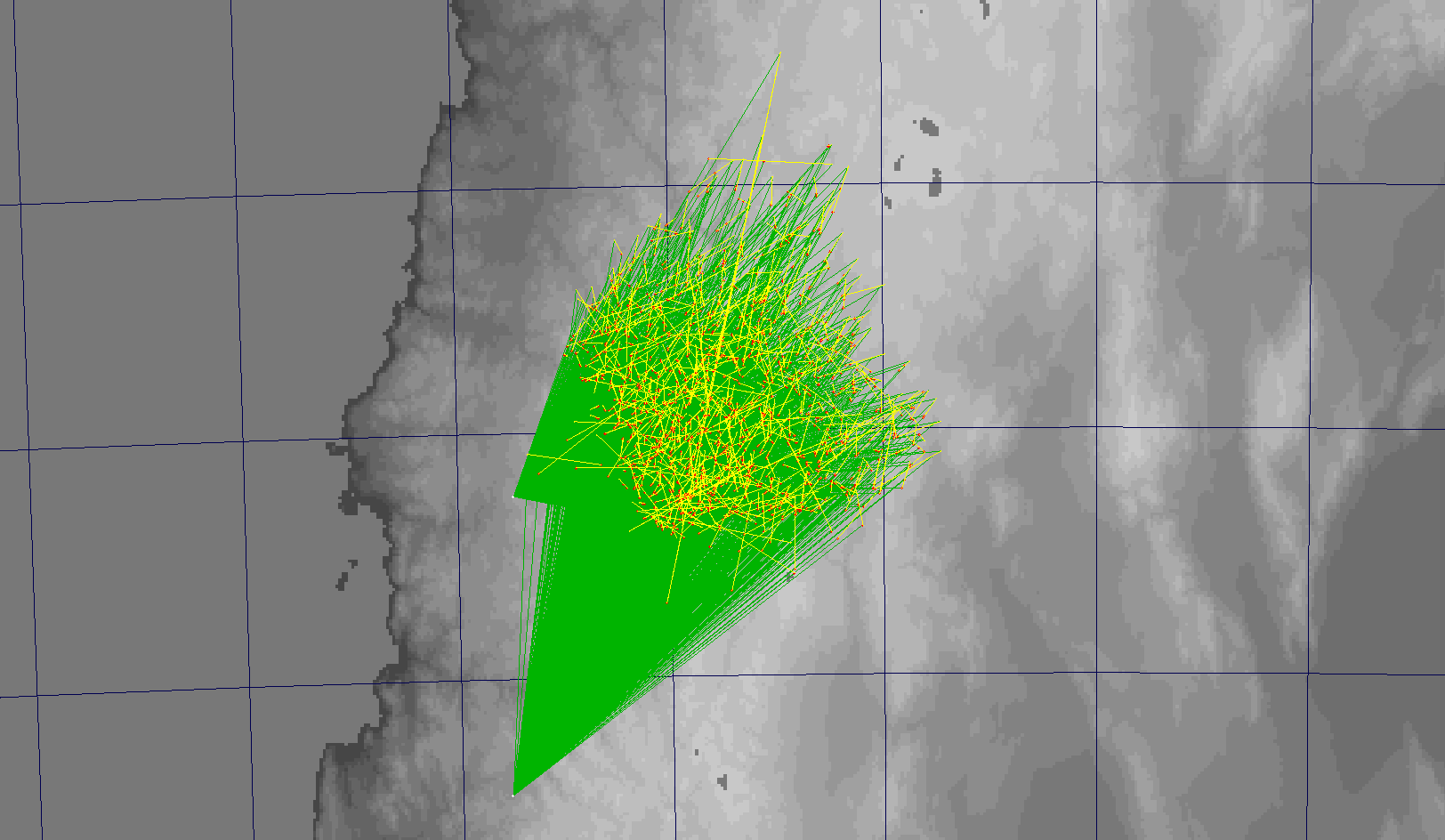 Nejvíce vícestaničních drah v rámci sítě CEMeNt patří ke sporadickému pozadí (7 010 drah), následuje meteorický roj Orionid (ORI, 437 drah, Obr. 9), jižních Taurid (STA, 223 drah, Obr. 10), severních Taurid (NTA, 80 drah), zářijových Perseid (SPE, 54 drah), severních delta Piscid (NPI, 39 drah), Leo Minorid (LMI, 33 drah) a pak následují další slabší meteorické roje, včetně členů antihelionového zdroje s radianty v Rybách a Beranu. Počet jednostaničních meteorů (stejně jako vícestaničnch drah) v září a říjnu je historicky vůbec nejvyšší v rámci sítě CEMeNt za celou dobu její existence od roku 2009. Efektivita párování v září 2025 poklesla na 66,9 %, což souvisí se inverzním charakterem počasí na níže položených stanicích sítě. Poměr stanice/dráha osciluje kolem průměrné hodnoty v průběhu roku 2025 a činí 3,19 stanice na dráhu v září, respektive 3,13 stanice na dráhu v říjnu. Celkem bylo v letošním roce doposud (k 31. 10. 2025) zaznamenáno 145 292 jednostaničních meteorů, jejichž kombinací vzniklo 29 982 vícestaničních drah (Tab. 1).
