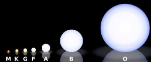Přiložený obrázek ilustruje řadu typů hvězd hlavní posloupnosti. Červení trpaslíci (trpaslíci spektrálního typu M) jsou vlevo a jsou to nejméně hmotné, nejchladnější, nejslabší a nejdéle žijící hvězdy. Vpravo jsou modří obři (spektrální typ O), nejhmotnější, nejžhavější a nejkratší dobu žijící hvězdy.