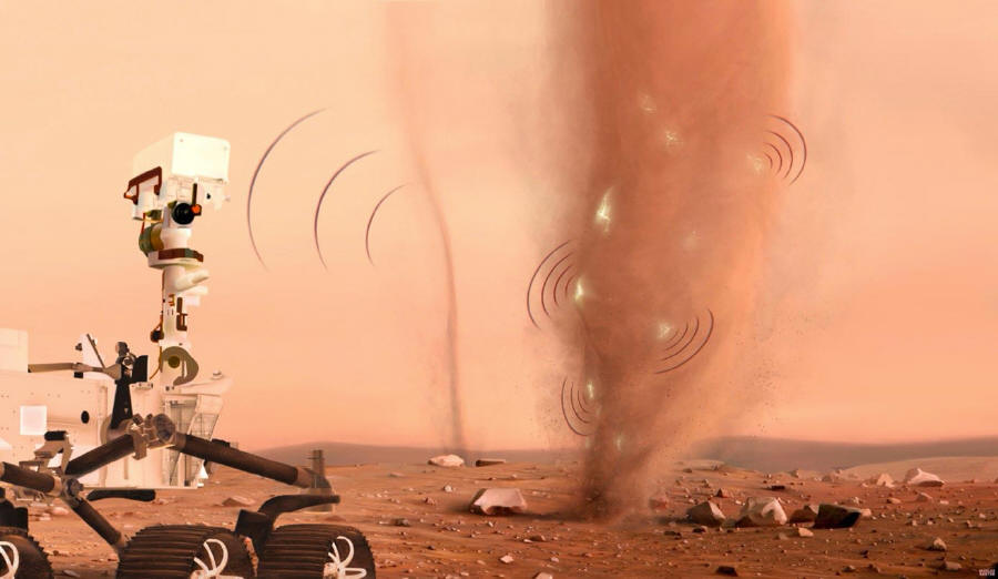 Poprvé byly detekovány elektrické jiskry uvnitř marťanských prachových vírů, což mění způsob, jakým vědci chápou atmosféru a klima planety. Na Marsu silný vítr běžně generuje vířivé sloupy jemného prachu. Při průchodu středem dvou takových prachových ďáblů-rarášků (anglicky dust devil) mikrofon přístroje SuperCam, prvního mikrofonu, který byl kdy na Marsu použit, nečekaně zachytil neobvykle intenzivní signály.