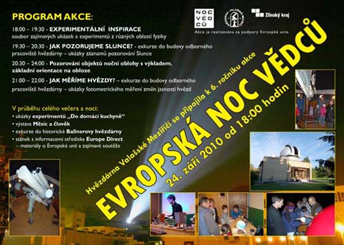 K této celoevropské akci se přihlásila Hvězdárna Valašské Meziříčí, p. o. s následujícím programem: