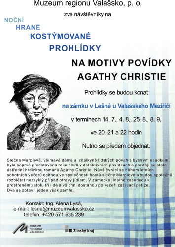 Zavítáte-li v odpoledních a večerních hodinách dne 4. srpna na Zámek Lešná, budete odměněni nejen prohlídkou nově zrekonstruovaného interiéru zámku, ve kterém jsou mimo historických místností k vidění také výstavy, enviromentální expozice a lapidárium. Budete mít možnost se zúčastnit také nočních hraných kostýmovaných prohlídek na motivy povídky Agathy Christie a z nádvoří zámku pozorovat také krásy noční oblohy hvězdářskými dalekohledy.