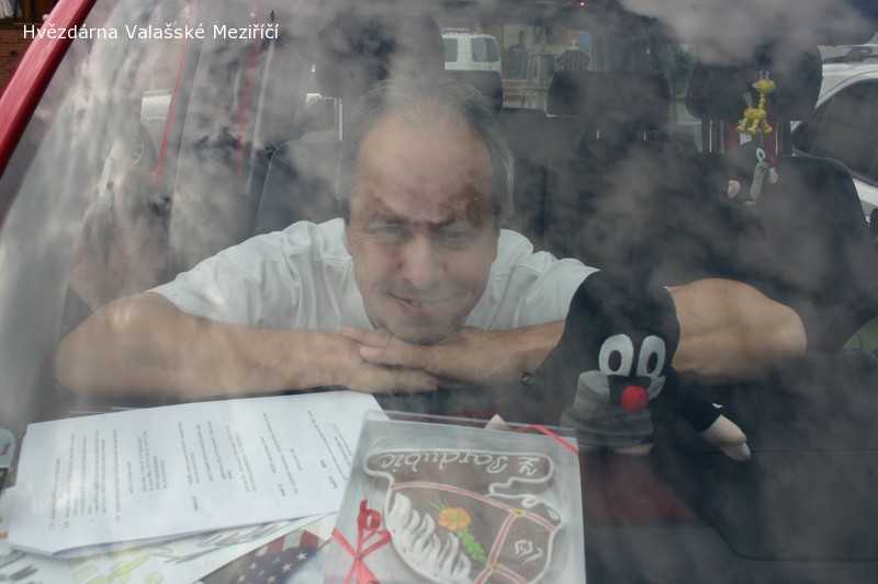 Kde rychle zajistit vhodný prostor? Musíme využít našich kontaktů ve Zlíně. Přemýšlím, jelikož musíme splnit ještě další podmínku, a tou je umístění tohoto prostoru podél trasy příjezdu. Mám to! Kousek od hlavní cesty ve Zlíně-Malenovicích sídlí firmy Moravské přístroje, velcí fandové astronomie, kosmonautiky a především dodavatele nejen astronomických CCD kamer. Zvedám telefon a po chvíli rozhovoru s Pavlem Cagašem, který je mým požadavkem mírně překvapen, souhlasí a slibuje, že vše bude zajištěno. Svět s přáteli je opravdu mnohem lepší! Ještě jednou děkuji nejen Pavlovi Cagašovi, ale i jeho kolegům a kolegyním a celé firmě Moravské přístroje. Děkujeme!