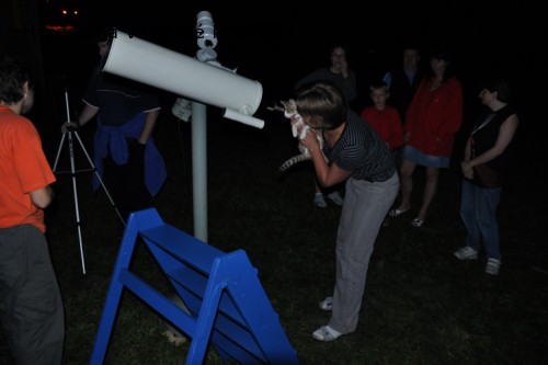 Závěr akce patřil velmi očekávanému pozorování objektů noční oblohy. Velmi vděčným objektem byl náš nejbližší vesmírných soused, Měsíc. Pro pozorování jsme využívali jeden přenosný zrcadlový dalekohled o průměru objektivu 150 milimetrů a dva menší klasické čočkové. Využili jsme i dalekohled místní holešovské hvězdárny. Po Měsíci přišly na řadu zajímavé vícenásobné hvězdné systémy, ale také kulová hvězdokupa, vzdálená galaxie v Andromedě. V čase čekání na další hřeb večera, planetu Jupiter, jsme nabídli základní orientaci na obloze a praktické ukázky vyhledání těch nejznámějších letních souhvězdí. Závěr patřil planetě Jupiter s mohutnými pásy oblačnosti a čtyřmi nejjasnějšími měsíci, které bylo možné v dalekohledu spatřit. Večerní pozorování s výkladem a diskusí využilo kolem 120 zájemců.